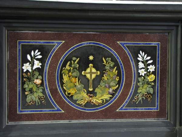 A talapzatán Gaetano Bianchini nemeskő- és márványberakásos intarziája
